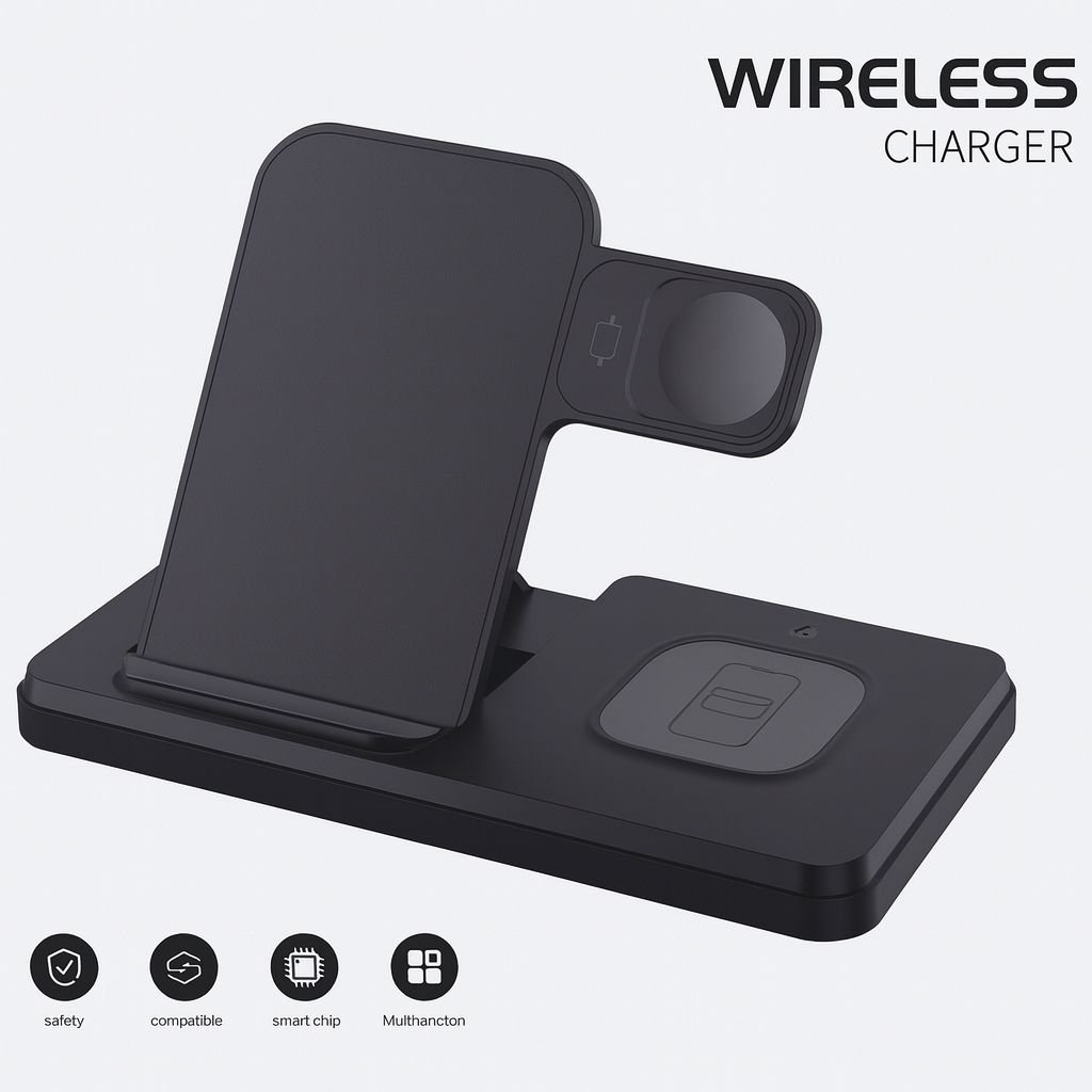 Mantén tus dispositivos siempre listos con este cargador inalámbrico multifunción que combina tecnología avanzada y diseño minimalista. Ideal para el hogar, oficina o mesa de noche, te permite cargar tu celular, smartwatch y auriculares al mismo tiempo, sin cables ni complicaciones.
